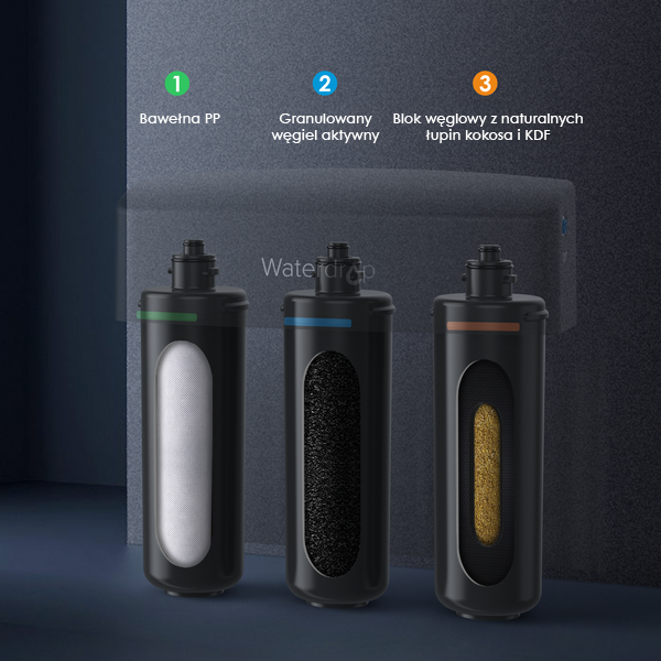 Kompatybilny z 3-stopniowym podumywalkowym filtrem do wody pitnej Waterdrop (WD-TSA/WD-TSB).