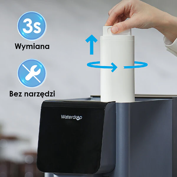 Ciesz się czystym nawodnieniem z oczyszczaczem wody Waterdrop A1 RO. Ten zaawansowany dozownik gorącej i zimnej wody zapewnia natychmiastową wodę, idealną dla każdego domu. W zestawie dołączony jest dodatkowy filtr CF.