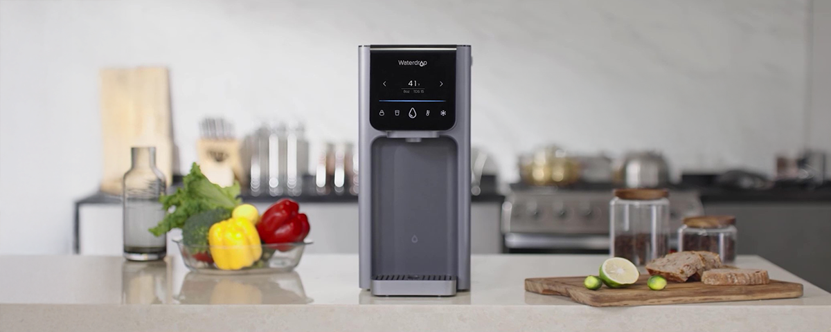 Waterdrop A1 to nablatowy filtr wody z odwróconą osmozą (RO), który oczyszcza wodę w chwili poboru i podaje ją w temperaturze zimnej, pokojowej lub gorącej. System wyposażono w lampę UV wspierającą higienę wody na etapie podawania. Urządzenie nie wymaga montażu pod zlewem ani stałego podłączenia do instalacji wodociągowej — wystarczy napełnić zbiornik i podłączyć je do zasilania. W zestawie znajduje się zapasowy filtr CF, co ułatwia późniejszą wymianę.
