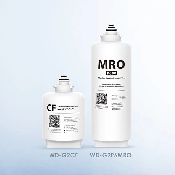 Filtr odwróconej osmozy Waterdrop G2P600 wykorzystuje 2 wkłady, które są niezbędne do poprawnego funkcjonowania urządzenia: