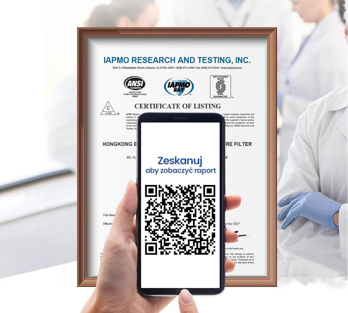 Certyfikat NSF/ANSI 42, 53, 58 i 372