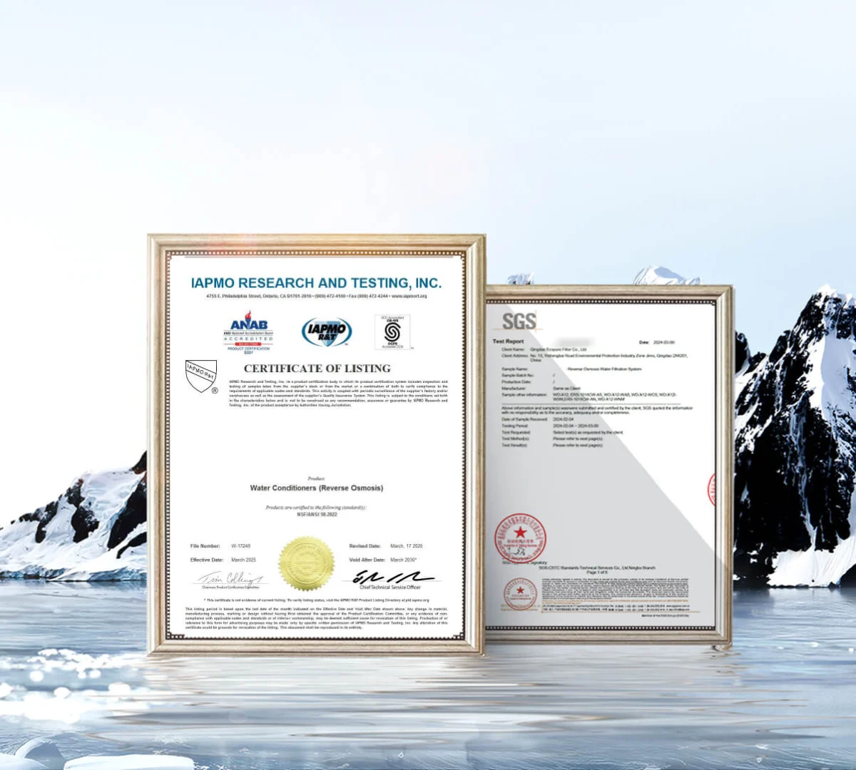 System certyfikowany przez IAPMO R&T zgodnie z normami NSF/ANSI 58 oraz CSA B483.1 w zakresie redukcji zanieczyszczeń określonych w Karcie Danych Wydajności, a także zgodnie z normą NSF/ANSI 372 dotyczącą niskiej zawartości ołowiu.