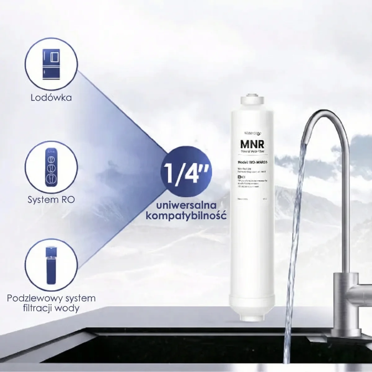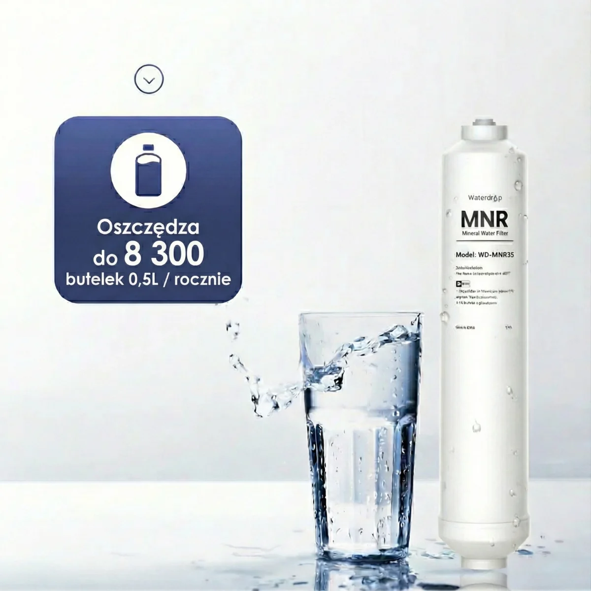 Filtr wody Waterdrop WD-MNR35 – kompaktowy system RO do użytku domowego, który nie tylko oczyszcza wodę, lecz także wzbogaca ją w naturalne minerały, zapewniając zdrową i smaczną wodę na co dzień.
