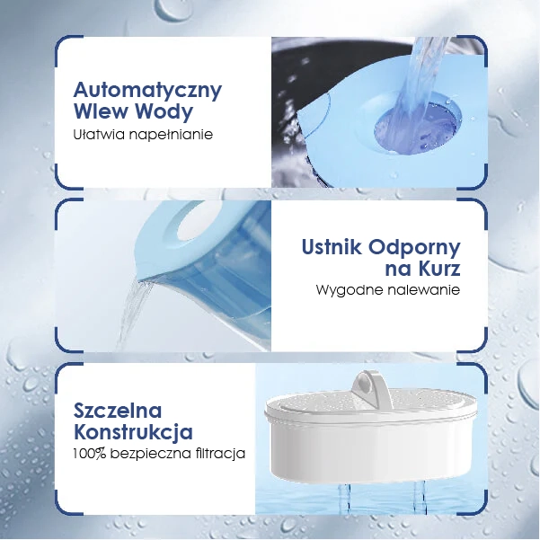 Wykonany z materiałów dopuszczonych do kontaktu z żywnością, bez BPA i ołowiu, dzbanek zapewni Tobie i Twojej rodzinie czystą wodę.