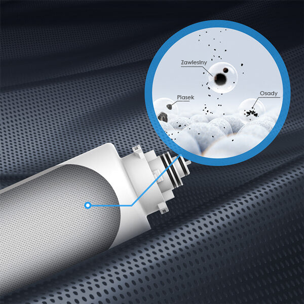 Filtr PP redukuje koloidy, osady, rdzę oraz zawieszone ciała stałe.