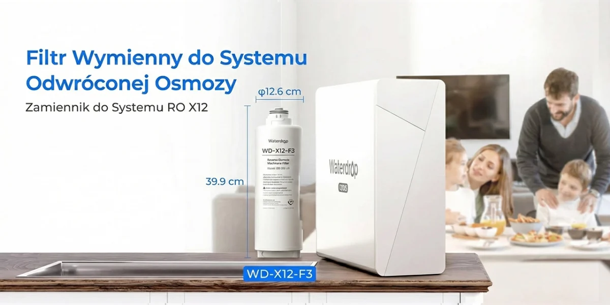 Filtr Waterdrop X12-F3 do systemu odwróconej osmozy WD-X12 zapewnia do 2 lat lub około 8 330 litrów czystej wody. Kup teraz, aby poprawić swoje nawodnienie dzięki systemowi filtracji wody metodą odwróconej osmozy.