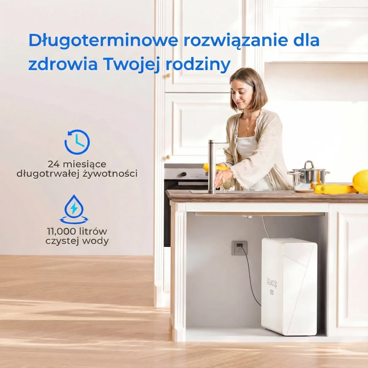 System odwróconej osmozy X12 wyróżnia się jako doskonały domowy system odwróconej osmozy. Ulepsz jakość swojej wody dzięki temu bezzbiornikowemu filtrowi do wody z odwróconą osmozą.